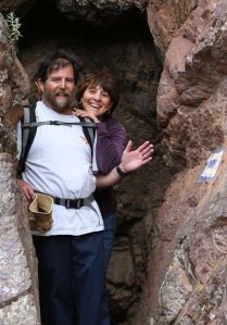 Sharon and Bernie pose for a picture on a walk-through cave path.