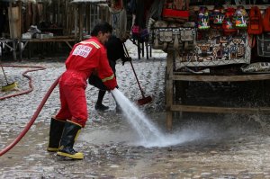 The Ollantaytambo firemen were out hosing down the streets for some reason or another.