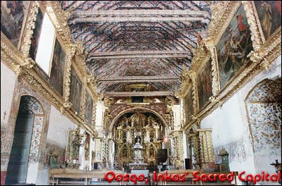 So, our tourist bus to Puno was a trip. Most of the buses Mike and I took up to this point we merely point A to point B buses, but this one was different. We figured we’d get the most out of our limited time with Sharon and Bernie if we hopped a bus that would take us to the neat touristy places on the way to Lake Titicaca. It was good to see some of the ruins and sights we saw, but I don’t really recommend this mode of travel unless you’re really strapped for time. We (Sharon and Bernie included) kind of felt like we’d fallen in with the geriatric crowd. These weren’t your young, energetic, adventurous tourists. These were the type of tourists who wear fanny packs and worry out loud about dangerous locals. These were the type who move in huddled masses like sheep being herded from destination to destination. Generally we like to think of ourselves as a bit more free-wheeling. We just didn’t feel like we had enough time to explore the sights and enjoy the fresh air before being pushed back on the bus. Nevertheless, we did get the opportunity to see the “Sistine Chapel of South America.”
