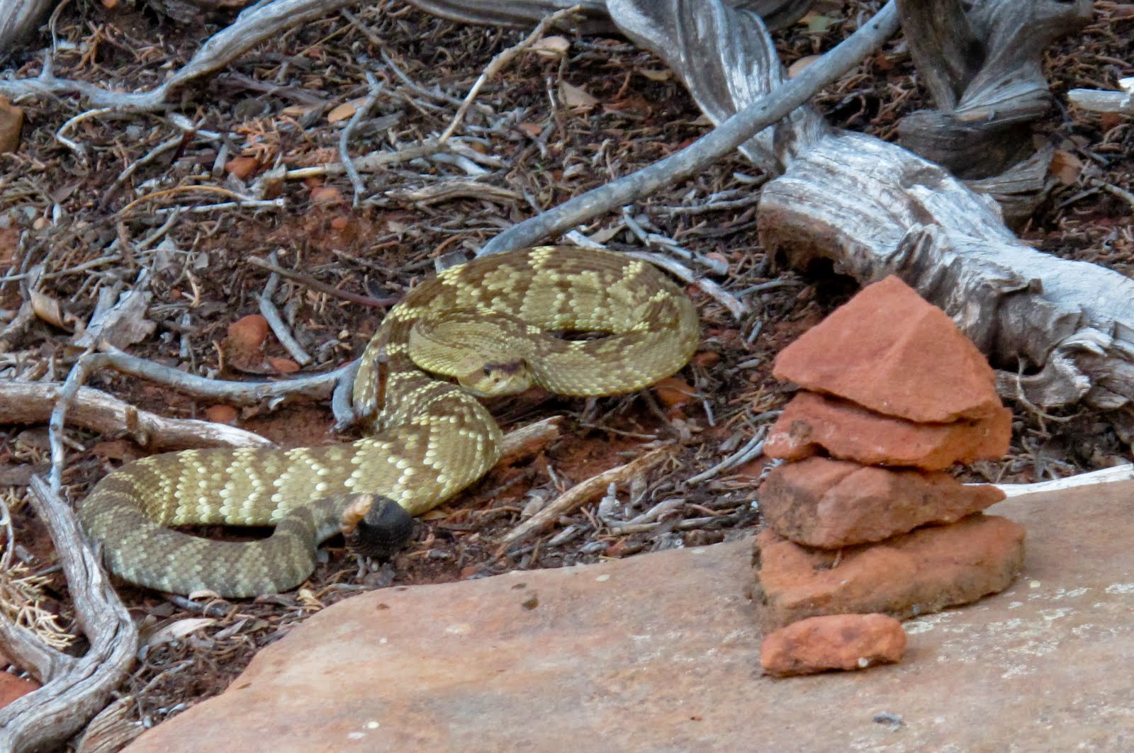 The last stop of the day brought us to the Devil’s Bridge. This is a natural archway in the red rock near Sedona. The hike itself is only about 1-2 miles and is fairly easy-going. That is, until you run into a rattlesnake! Mike was ahead of me on the trail, heard the ominous rattle, and leaped back about 3 feet. Luckily we managed to scootch past him after taking his picture. In my 5 years of hiking in AZ, this is the first time I’ve seen a rattlesnake on a hiking trail, so it was exciting, but also a bit nerve-racking. I was a bit more skittish than usual on our hike out.