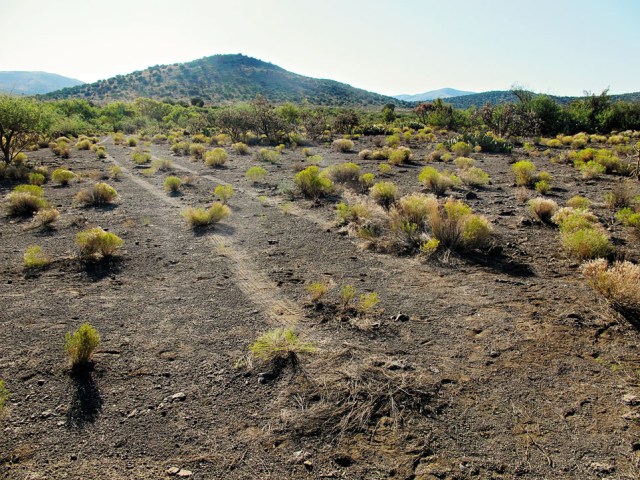 We had a topographic map with us, so we picked out the approximate location of our car based on its relation to distant hills. Mike decided that we should try to intersect the road we drove in on instead of trying to locate our car exactly. This, of course, was a smart plan, but I was still a little worried about it. There hadn’t been much of a road on the way in, and I wasn’t confident that we would recognize it when we came to it. I was mentally prepared to sleep in the open desert if necessary. My wetsuit would make a decent sleeping pad, and I remembered to pack my emergency blanket.