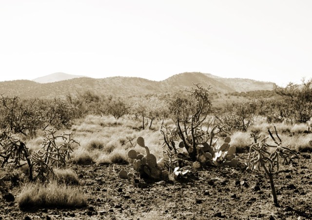Mike and I took along Pradeep, a canyoneering virgin, for this particular trek. Come Friday night, we were heading east out of the Valley toward the San Carlos Reservation. Once we headed off the highway and started along the dirt roads, the tracks became a bit overgrown and dicey. No worries, though; we drove to the end and parked our car in the middle of the desert. Around midnight we went to sleep.