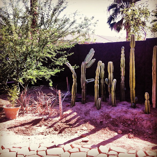 Facing southwest, salvaged cacti, a much larger Palo Brea, and our path/patio in progress (these last pics were taken June 7th on my iPhone, so they’re not super-great quality)
