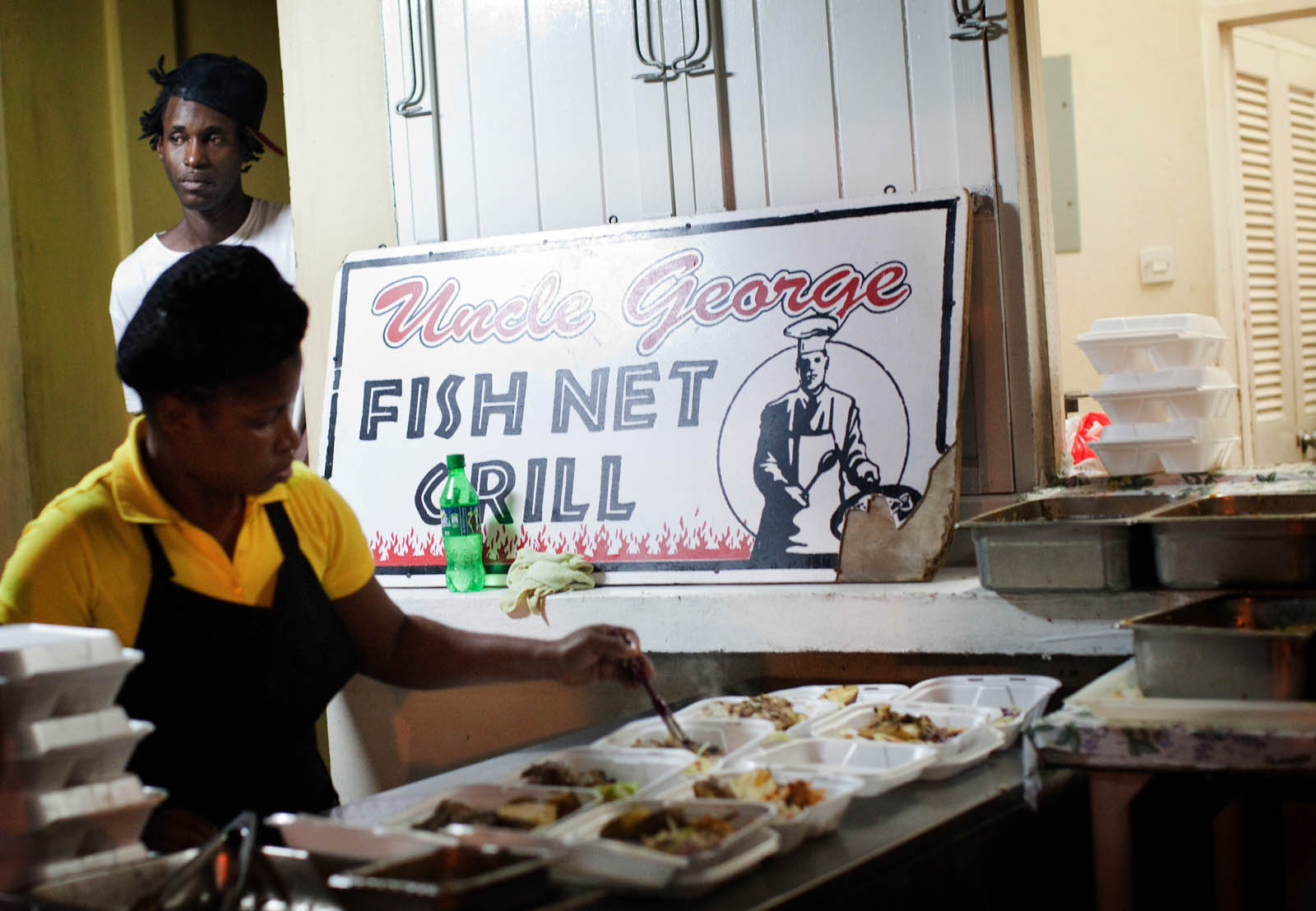 Oistins is a town not far from the capital that hosts a fish fry every Friday. It is a chance for vendors to sell souvenirs, old men to play dominoes, and everyone to eat the catches of the day. We stood in a ridiculously long line (An hour? No, two, I think…) to get our food from the hot spot of the night (Uncle George’s Fish Net Grill). As we waited, Mike and I took turns scoping out the area. Eventually we ordered. I’m not a huge seafood fan, but it was quite good. Once we finished, we wandered around a bit more and headed back to our house on the hill.