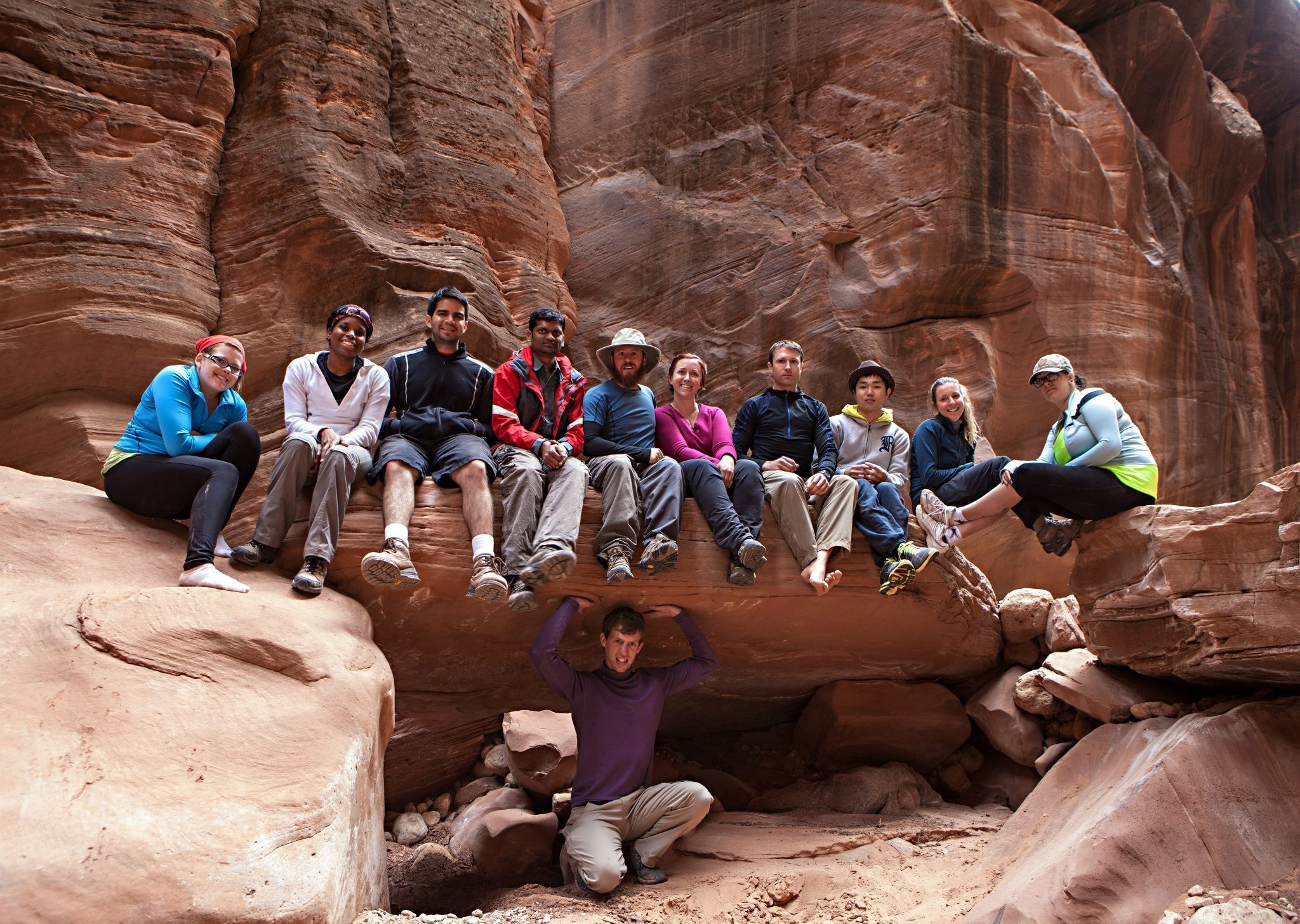 On Sunday we quickly turned into the wider, wetter Paria Canyon. The walls still rose above us, but they were no longer so close that we could stretch our arms and touch both sides. Instead, we waded through water up to thigh deep for another 7 miles to our campsite from Friday night. Everyone had finished the hike by early afternoon. We went for some delicious Mexican food and headed home.