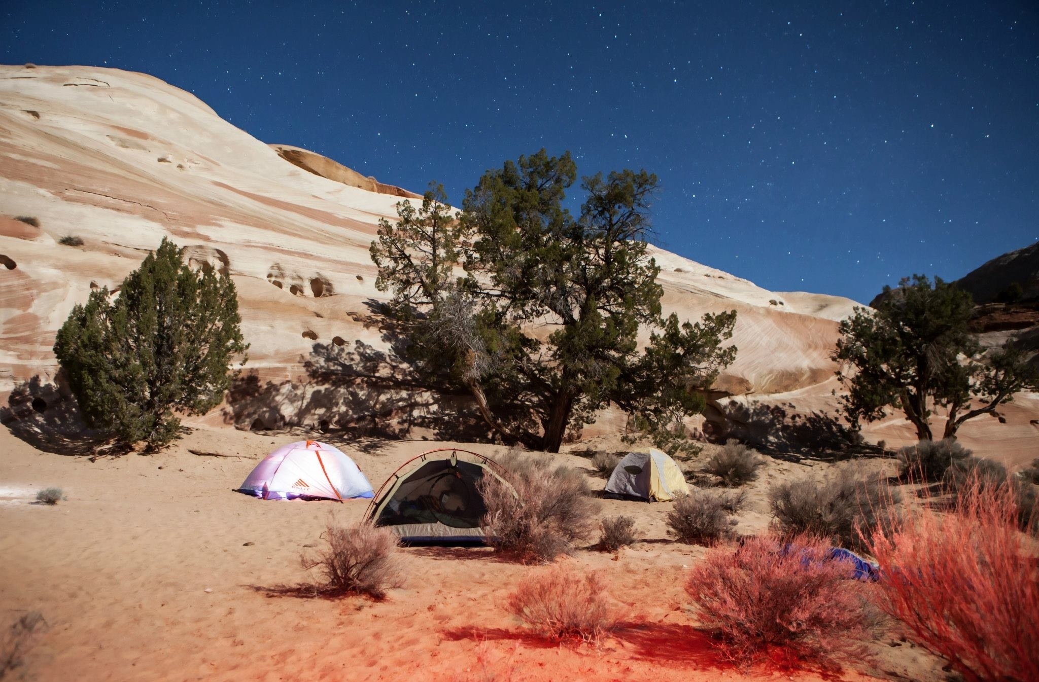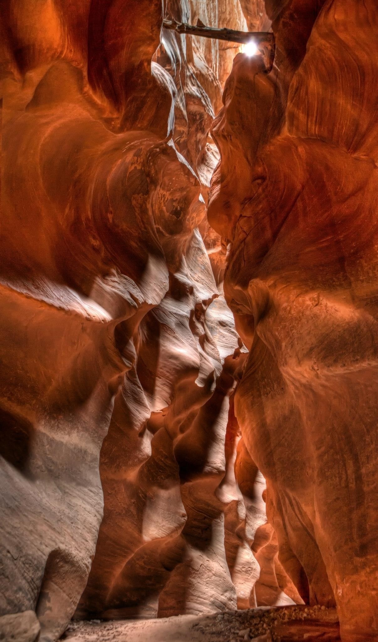 We worked our way through Buckskin Gulch itself on Saturday. We hiked 14 miles to a campsite high on a hill near the confluence with Paria Canyon. The majority of the hike was flat and simple; nonetheless 14 miles of hiking is tiring. There were a few tricky spots with down climbs or very cold, thigh-deep mud pits, but mostly we cruised along, taking tons of photos and enjoying the spectacular scenery. We did end up hiking for an hour or so in the dark (and it was very dark — almost cavelike — with such high canyon walls), but everyone had headlights.