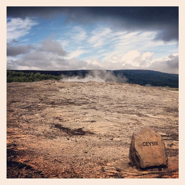 Geysir is a geyser. In fact, it’s the geyser, as in the one for which all geysers are named. Apparently it used to erupt a lot and frequently, but not so much anymore. Of course, it would be ridiculous to go see a non-functioning geyser, so it’s lucky that its next door neighbor is a more reliable spout. Strokkur is the geyser people come to see erupt, even though the area is still known as Geysir.