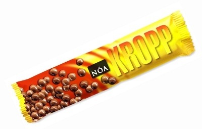 Speaking of corn puffs, we tried the Nóa Kropp bar once. It tastes like milk chocolate poured over Kix cereal: good, but not good enough to compete with other candies we tried.