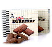 Say what?? These Rjómasúkkulaði are the most upscale (aka pricey) of the common Sirius company chocolates (Pipp and Nizza are also Sirius). Personally, I think they’re overrated, though their packaging is pretty. We’ve had the Appelsínubragði (Orange) and Hnetum (Hazelnut) varieties. Not bad, but not orgasmic either. The flavor choices are rather disappointing as well. In addition to the two that sound remotely desirable, there are Raisin, Raisin and Hazelnut, Milk Chocolate, and Crispy Rice flavors. Since when are Crunch bars upscale?