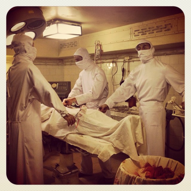 We started off at a place called Hospital in the Rock. Its name is pretty apt, though it has undergone many transformations. Basically, there are a lot of naturally-occurring caves underneath Castle Hill. They were used for a number of purposes in ancient times, but their more modern history began around the time of WWII. The caves were connected by tunnels and made into a hospital. It served thousands of soldiers and civilians during WWII and other later conflicts in Budapest. Then, during the Cold War it became a nuclear bunker. The tour was really fascinating since it contained TONS of medical supplies from the 40s-60s. It was also populated with many wax figures. We got to see surgical rooms, dorms, the kitchen, the water treatment facility, the air filtration system, the crazy fuel tanks that were secretly restocked by “gardeners” “watering flowers” on Castle Hill when it was a secret shelter, and more. I highly recommend this bizarre tour to anyone visiting Budapest.