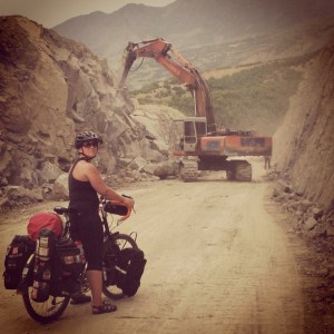 It was a beautiful narrow canyon with high walls, so despite the shitty road, constant rockfall danger, and construction equipment strewn everywhere, the ride was okay. There was very little traffic.