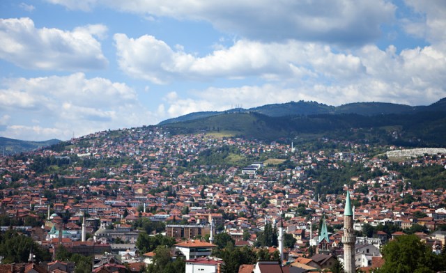 Our train ride to Sarajevo was pretty epic. I was immediately glad we hadn’t biked that portion since there were mountains upon mountains along the way. Sarajevo was the host city for the 1984 Winter Olympics after all, and you can’t host Winter Olympics without big mountains. Our train must have passed through almost a hundred tunnels during the two-hour trip. It was very scenic and beautiful, best viewed from a train window.